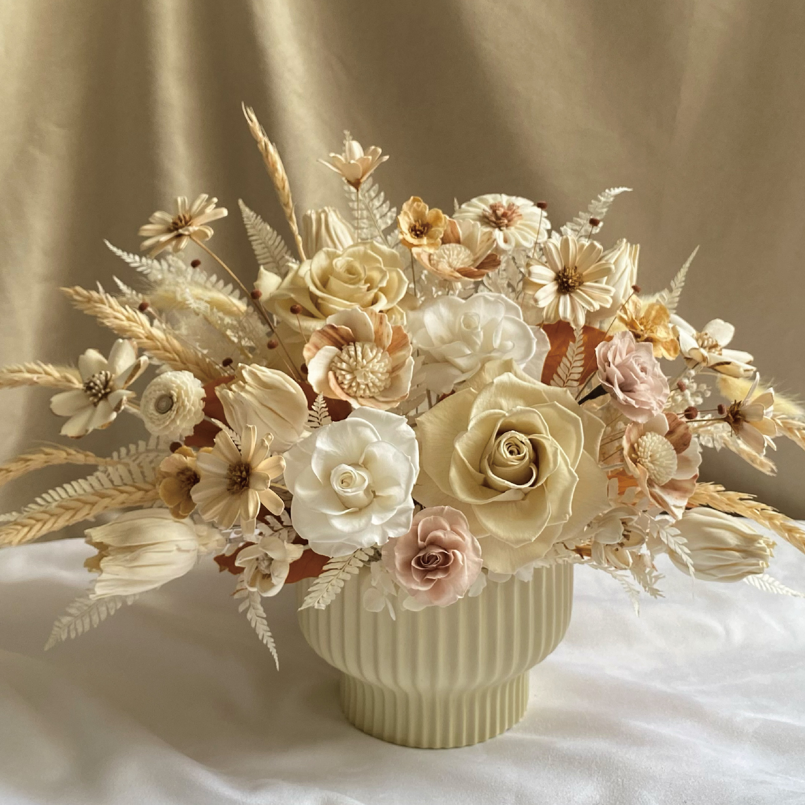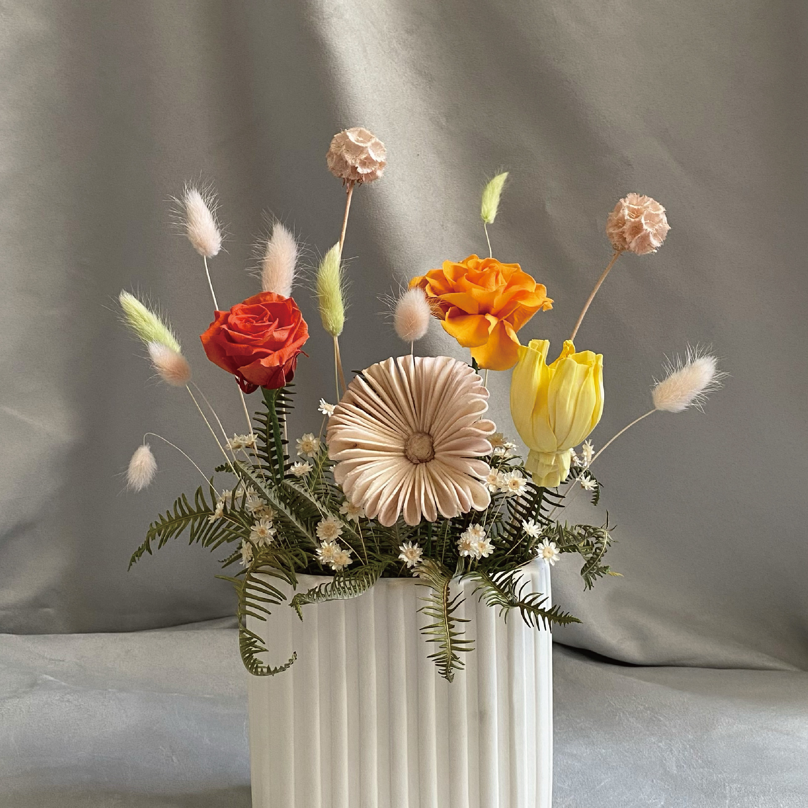 系列向藝術家「康丁斯基」致敬,以解構的點、線、面為構圖語言,結合花草自然的線條與律動,創造富有現代感與抽象精神的花藝畫面。在秩序與自由之間,譜出一段獨特而和諧的視覺節奏,展現藝術與自然的對話。